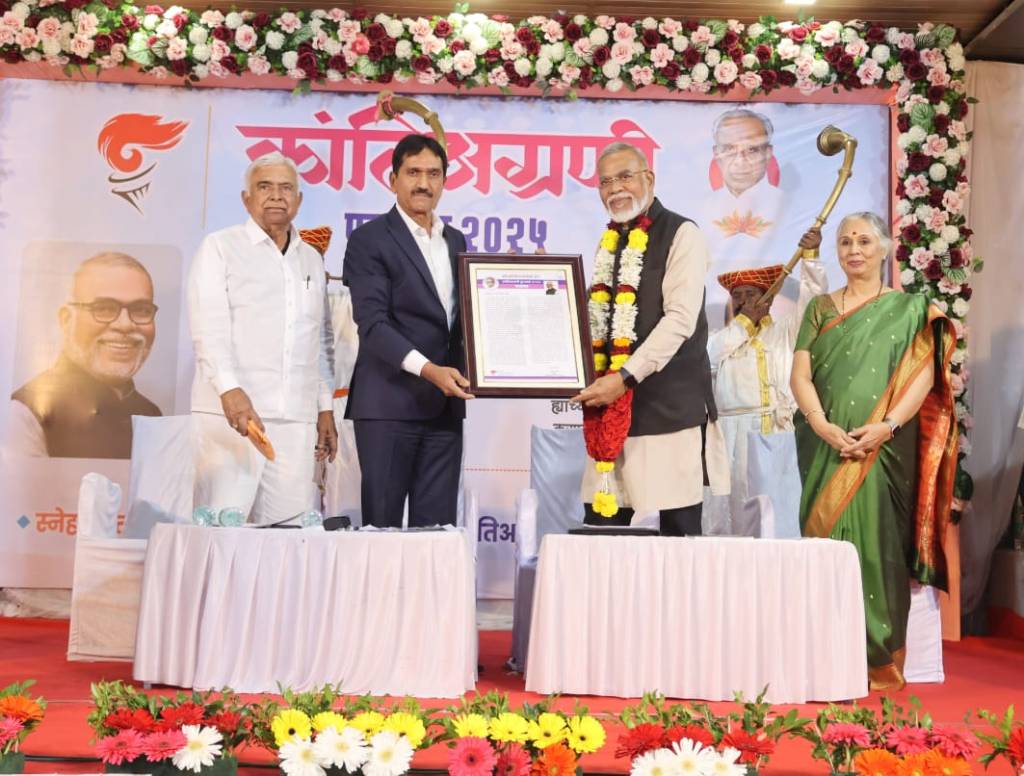 प्रसिद्ध समाजसेवक आणि विचारवंत डॉ. बाबा आढाव यांना ज्येष्ठ संपादक अनंत दीक्षित यांच्या हस्ते व अरुण गणपती लाड, श्रीमती हौसाताई पाटील आणि मान्यवरांच्या उपस्थितीत क्रांतिअग्रणी पुरस्काराने सन्मानित करण्यात आले. डॉ. बाबा आढाव महाराष्ट्रातील सामाजिक न्याय चळवळीतील एक दिग्गज व्यक्तिमत्त्व आहेत. कामगार हक्क, जातीय भेदभावाविरुद्ध लढा आणि कामगार आणि उपेक्षित समुदायांच्या हक्कासाठी त्यांचे आजीवन कार्य त्यांना प्रगतीशील चळवळींमध्ये एक प्रमुख व्यक्तिमत्त्व बनवते. त्यांची निर्भीड सक्रियता आणि सामाजिक समतेप्रती त्यांची असलेली बांधिलकी यांनी पिढ्यानपिढ्या समाजसेवक आणि कार्यकर्त्यांना प्रेरणा देत आहे.